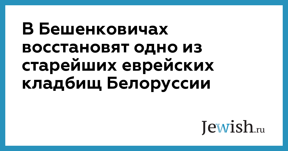 Летом этого года в городе Бешенковичи Витебской области начнутся работы по восстановлению местного еврейского кладбища — одного из старейших в Белоруссии. Проект инициировала евреи Витебска при поддержке минской и петербургской общин, сообщает