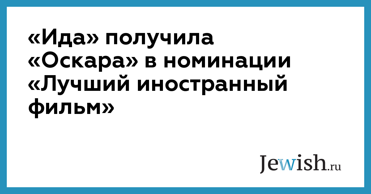 Фильм «Ида», посвященный Холокосту в Польше и его последствиям, получил премию «Оскар» в номинации «Лучший иностранный фильм». Картина режиссера Павла Павликовского опередила российского «Левиафана», грузинско-эстонскую ленту «Мандарины», мавританский фильм «Тимбукту» и аргентинский «Дикие истории».