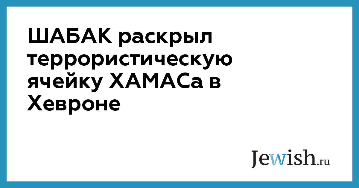 ШАБАК раскрыл террористическую ячейку ХАМАСа в Хевроне