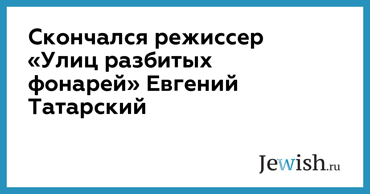 23 февраля в Санкт-Петербурге в возрасте 77 лет скончался Евгений Татарский, создатель «Приключений принца Флоризеля» и фильма «Джек Восьмеркин, американец», режиссер сериалов «Улицы разбитых фонарей» и «Убойная сила».