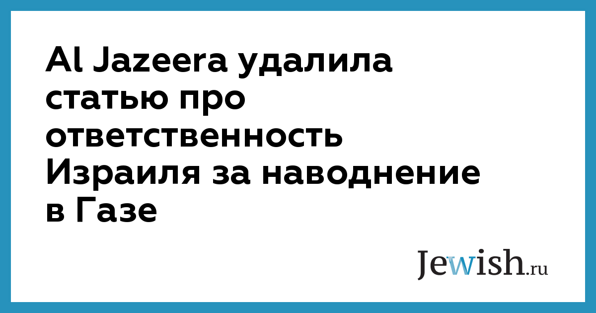 Al Jazeera удалила статью про ответственность Израиля за наводнение в Газе