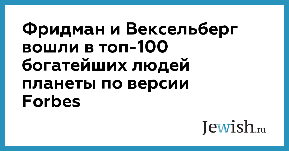 Фридман и Вексельберг вошли в топ-100 богатейших людей планеты по версии Forbes
