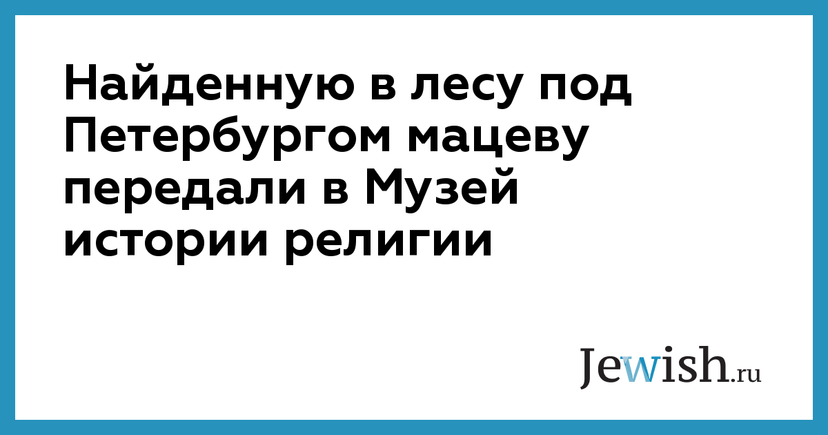 В санкт-петербургский Музей истории религии передали еврейское надгробие, обнаруженное летом прошлого года в пригородном лесу. «Мы передали мацеву реставраторам. Надгробие будут миллиметр за миллиметром пропитывать специальными составами, чтобы оно не рассохлось и не рассыпалось. Это кропотливая работа, которая продлится 2 года, – заявила хранитель музейного фонда «Иудаизм» Алла Соколова. – Надеюсь, что, когда мы будем делать выставочный проект, посвященный еврейским традициям погребения, эта мацева будет представлена в экспозиции».