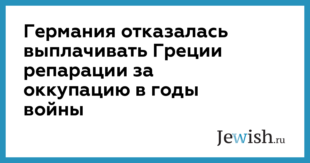 Германия считает вопрос военных репараций закрытым и не планирует выплачивать Греции дополнительную компенсацию за оккупацию в годы Второй мировой войны, заявил официальный представитель правительства ФРГ Штеффен Зайберт. Накануне премьер-министр Греции Алексис Ципрас заявил, что Германия должна возместить Греции ущерб от оккупации – компенсации за разрушенную инфраструктуру, репарации, вернуть «оккупационный кредит» и похищенные археологические ценности, пишет