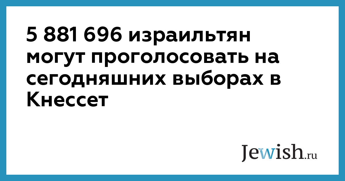 5 881 696 израильтян могут проголосовать на сегодняшних выборах в Кнессет