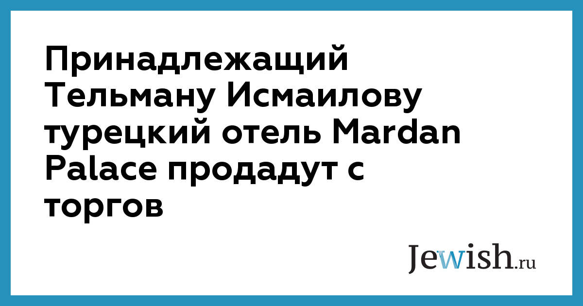 Отель Mardan Palace и 6 вилл российского бизнесмена, представителя общины горских евреев Тельмана Исмаилова выставят на торги из-за задолженности перед турецким банком Xalk bankasi, сообщает портал