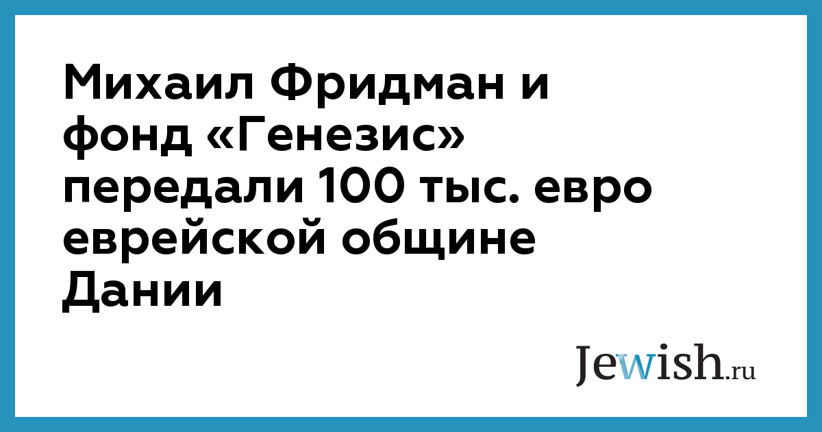 Михаил Фридман и фонд «Генезис» передали 100 тыс. евро еврейской общине Дании