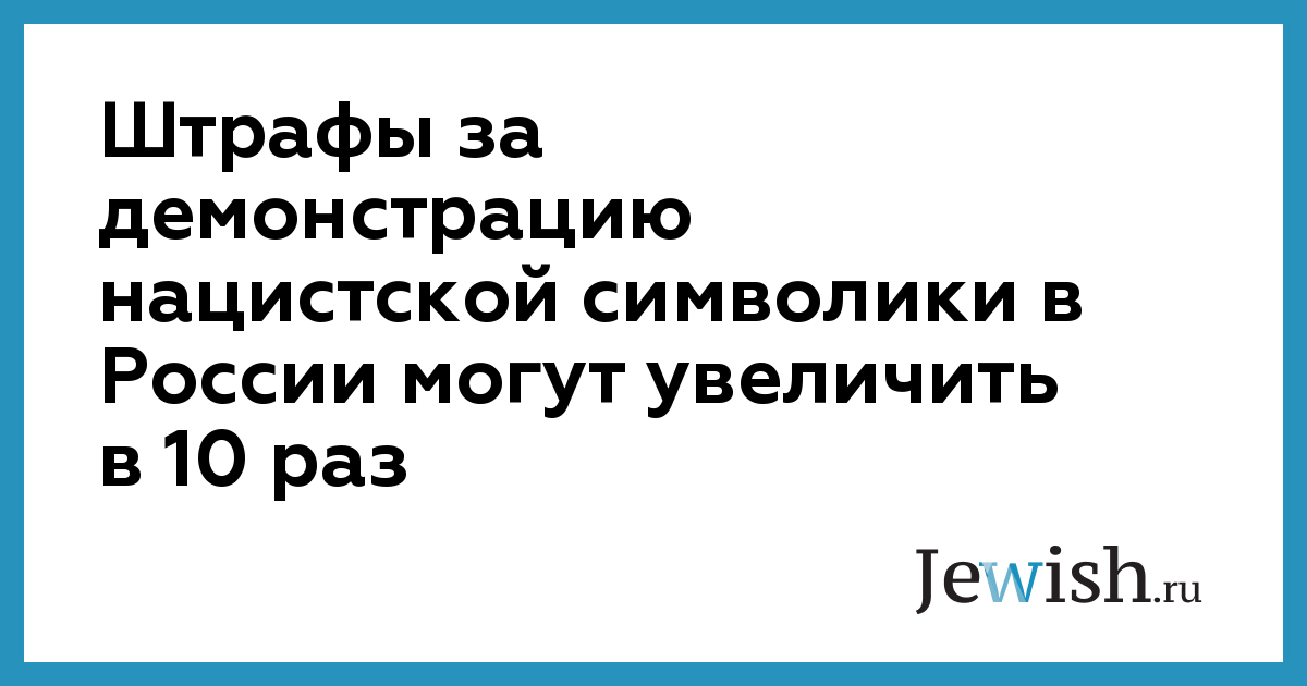 За пропаганду или публичную демонстрацию экстремистской и нацистской символики граждан предлагается штрафовать на сумму от 10 до 20 тысяч рублей (сейчас штраф составляет 1-2 тысячи рублей). Штраф для должностных лиц в законопроекте установлен на уровне 15-30 тысяч рублей (сейчас 1-4 тысячи рублей), а для юридических — 50-100 тысяч рублей (сейчас 10-50 тысяч рублей).