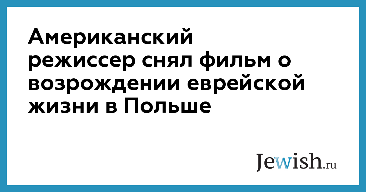 Американский режиссер снял фильм о возрождении еврейской жизни в Польше