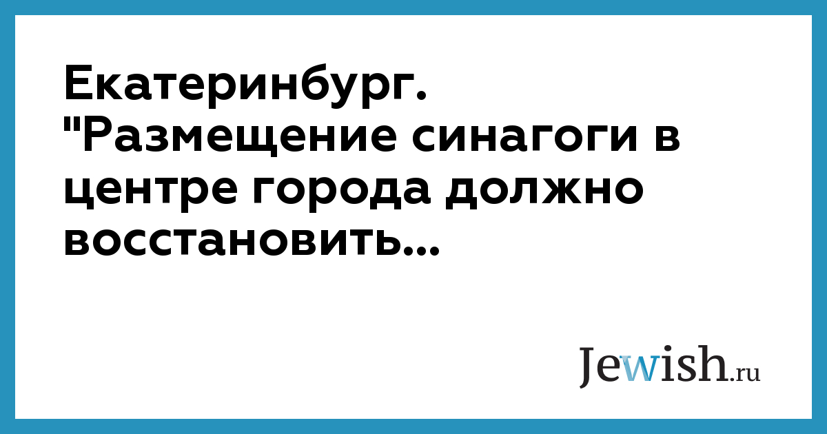 Екатеринбург. "Размещение синагоги в центре города должно восстановить...