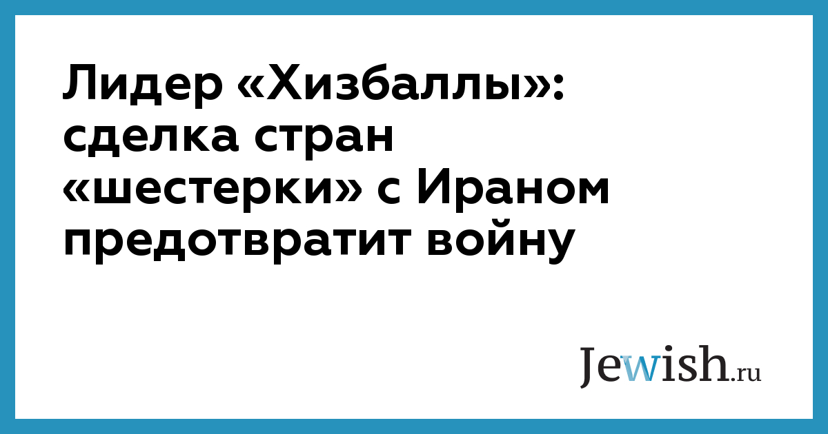 заявил в интервью на сирийском телевидении, что готовящееся соглашение между странами «шестерки» и Ираном позволит «предотвратить серию региональных конфликтов и мировую войну». «Израильский враг неоднократно угрожал бомбить иранские объекты, что неизбежно привело бы к войне в регионе», – сообщил Насралла. По словам лидера «Хизбаллы», соглашение между западными странами и Ираном имеет огромное значение как для Ближнего Востока, так и для всего мира.