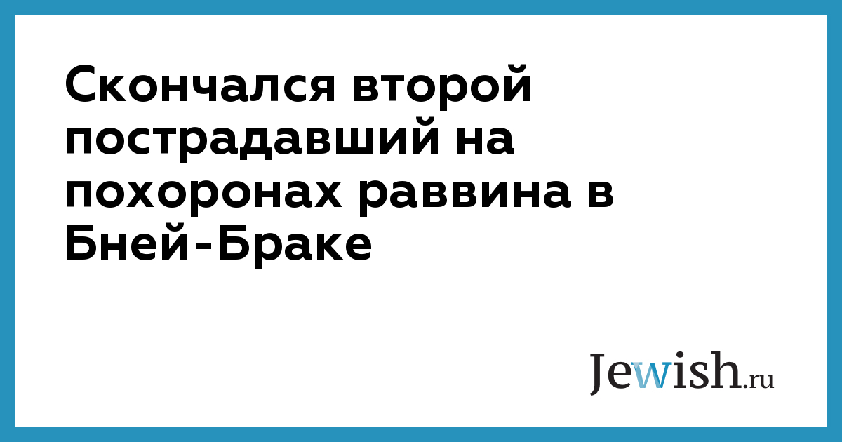 Скончался второй пострадавший на похоронах раввина в Бней-Браке