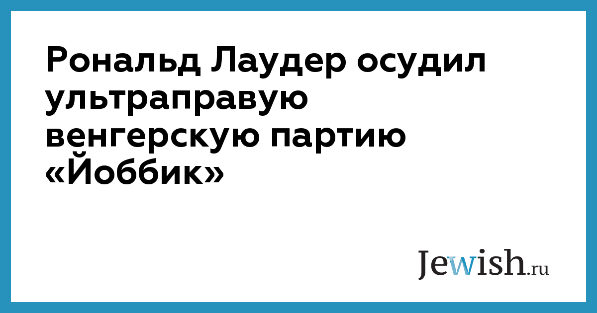 Рональд Лаудер осудил ультраправую венгерскую партию «Йоббик»