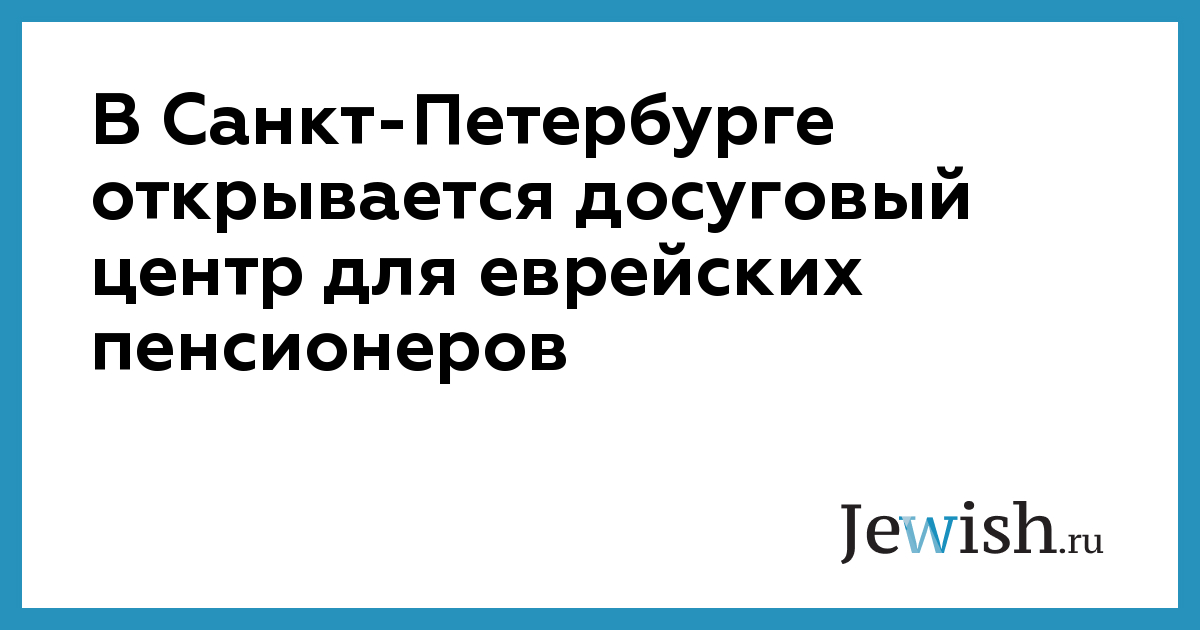 В Санкт-Петербурге открывается досуговый центр для еврейских пенсионеров