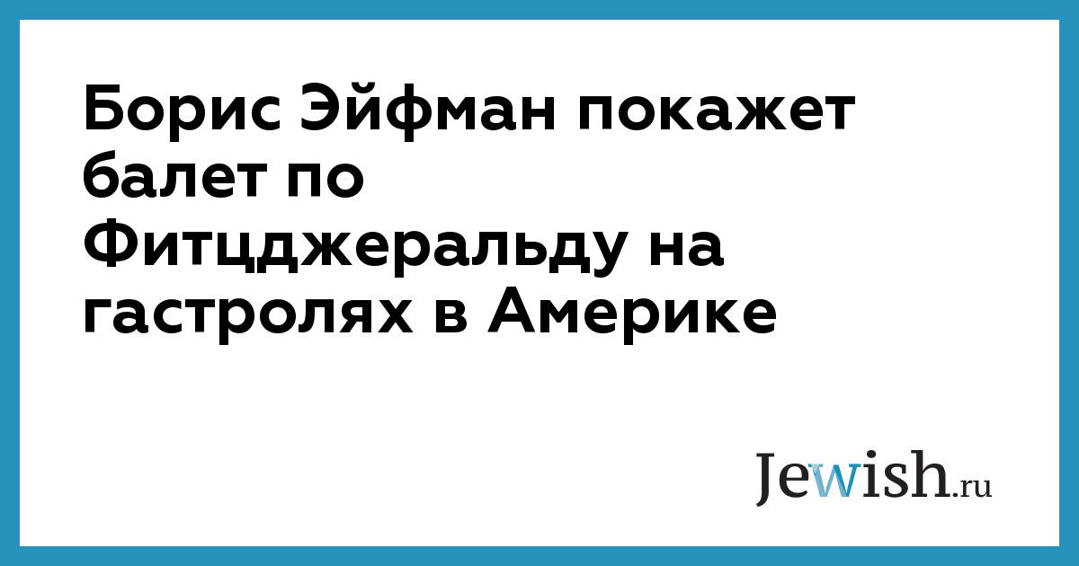 Центральным событием гастрольного тура станет представление нового балета Эйфмана, созданное по мотивам произведения Фитцджеральда на музыку Гершвина, Шуберта и Берга. Премьера первой в своем роде хореографической обработки Фитцджеральда состоялась 27 января в Санкт-Петербурге. В США новый балет увидят зрители Чикаго, Нью-Йорка и Коста-Месы.