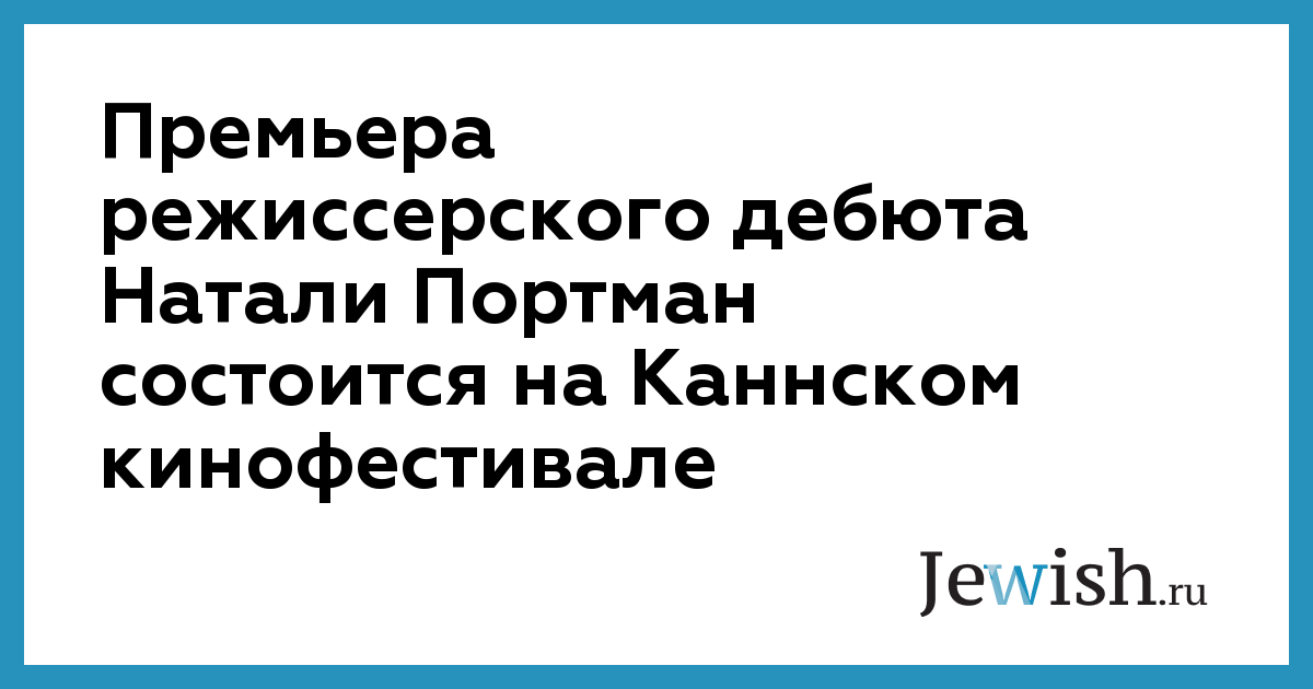 Премьера режиссерского дебюта Натали Портман состоится на Каннском кинофестивале