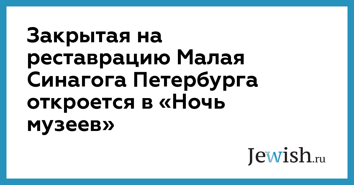 Закрытая на реставрацию Малая Синагога Петербурга откроется в «Ночь музеев»