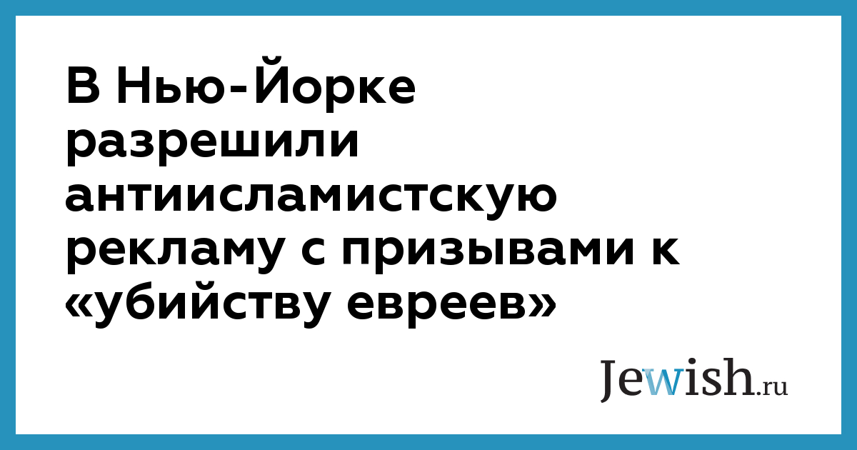 В Нью-Йорке разрешили антиисламистскую рекламу с призывами к «убийству евреев»