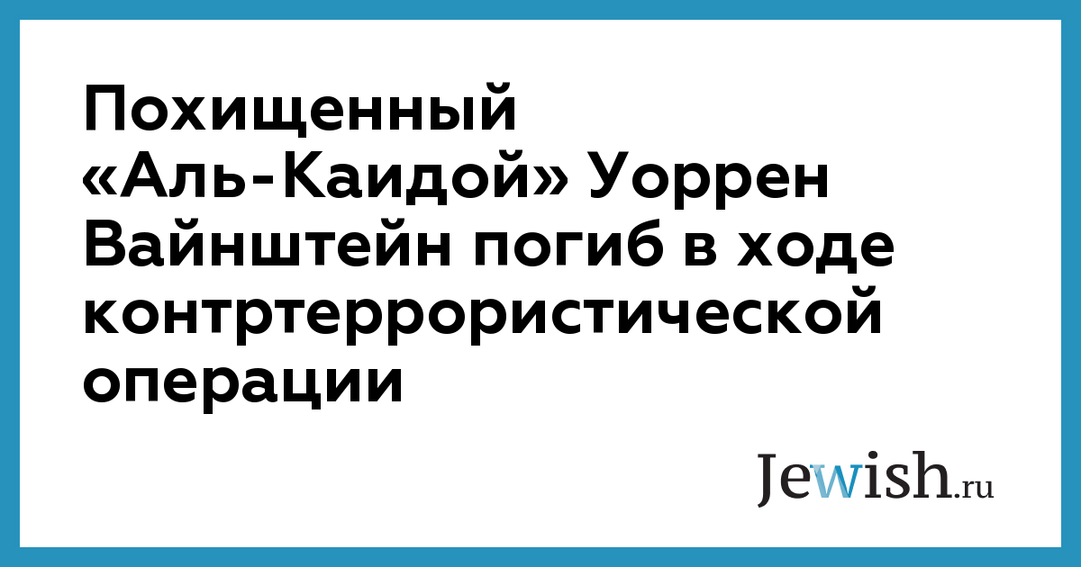 Похищенный «Аль-Каидой» Уоррен Вайнштейн погиб в ходе контртеррористической операции