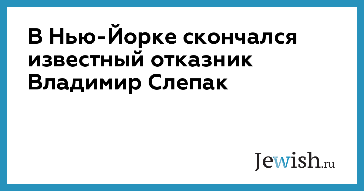 24 апреля в Нью-Йорке в возрасте 87 лет скончался Владимир Семенович Слепак, отказник, активист еврейского движения в СССР, член Московской Хельсинкской группы, сообщает