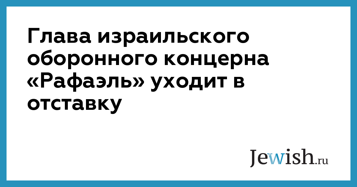 Глава израильского оборонного концерна «Рафаэль» уходит в отставку