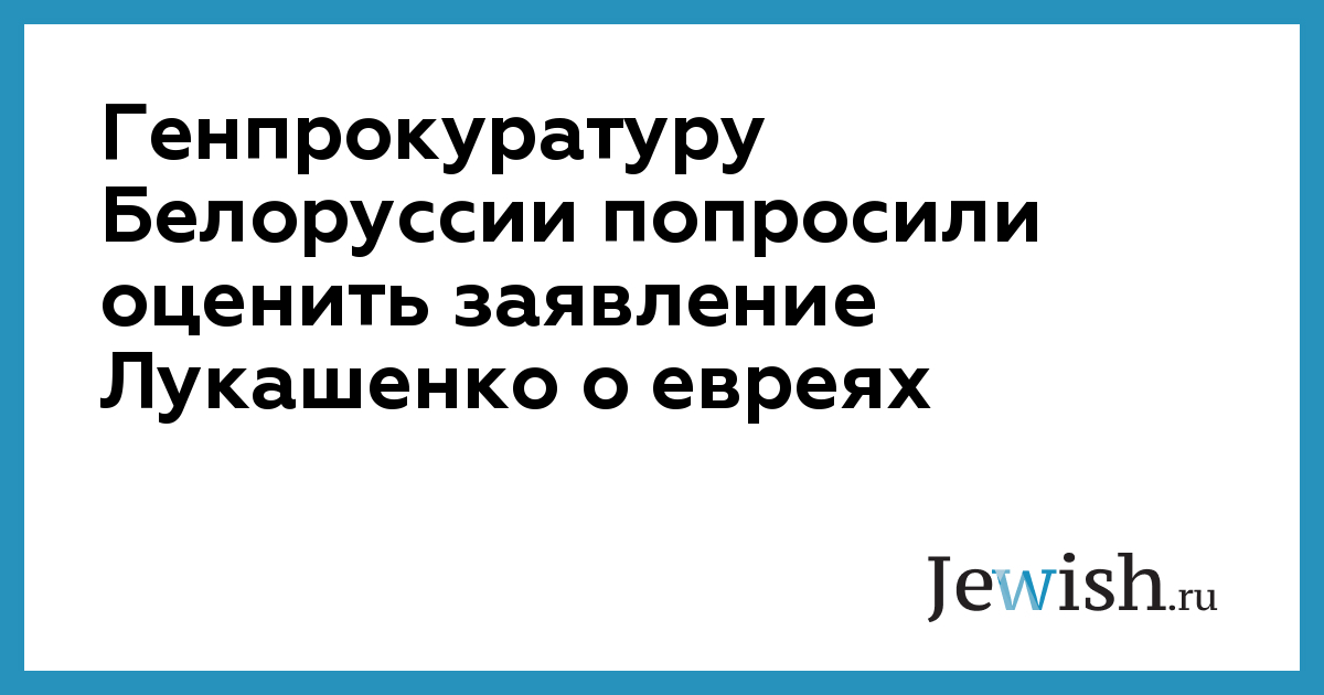 словам президента Александра Лукашенко о евреях. Высказывания президента Белоруссии предлагается проверить на предмет «разжигания национальной или религиозной вражды или розни».