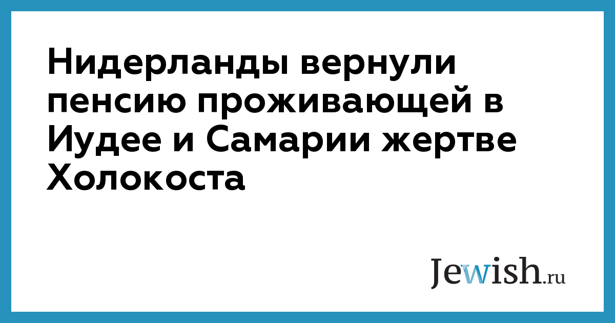 JTA. Согласно правительственным договоренностям между Нидерландами и Израилем, европейское государство продолжает выплачивать пенсии в полном объеме гражданам, репатриировавшимся в Израиль. Однако голландские евреи, поселившиеся за пределами границ 1967 года, получают сокращенную пенсию, так как Нидерланды не признают Иудею и Самарию территорией Израиля.