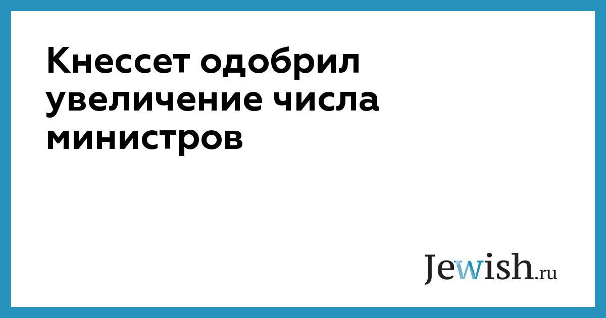 Сегодня, 13 мая, Кнессет во втором и третьем чтениях одобрил законопроект о расширении кабинета министров, согласно которому общее число министров увеличивается с 18 до 22 человек. За принятие поправки проголосовал 61 депутат, то есть представители всех партий, вошедших в правящую коалицию («Ликуд», «Кулану», «Еврейский дом», ШАС, «Яадут ха-Тора»). Остальные члены Кнессете (59 депутатов) проголосовали против.