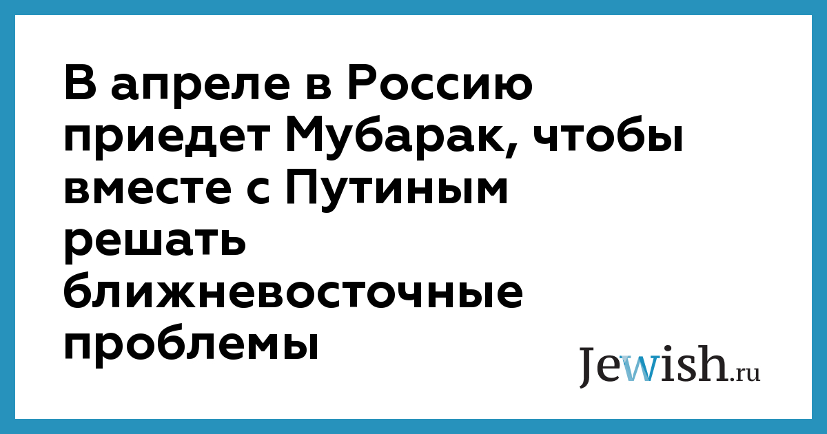 В апреле в Россию приедет Мубарак, чтобы вместе с Путиным решать ближневосточные проблемы