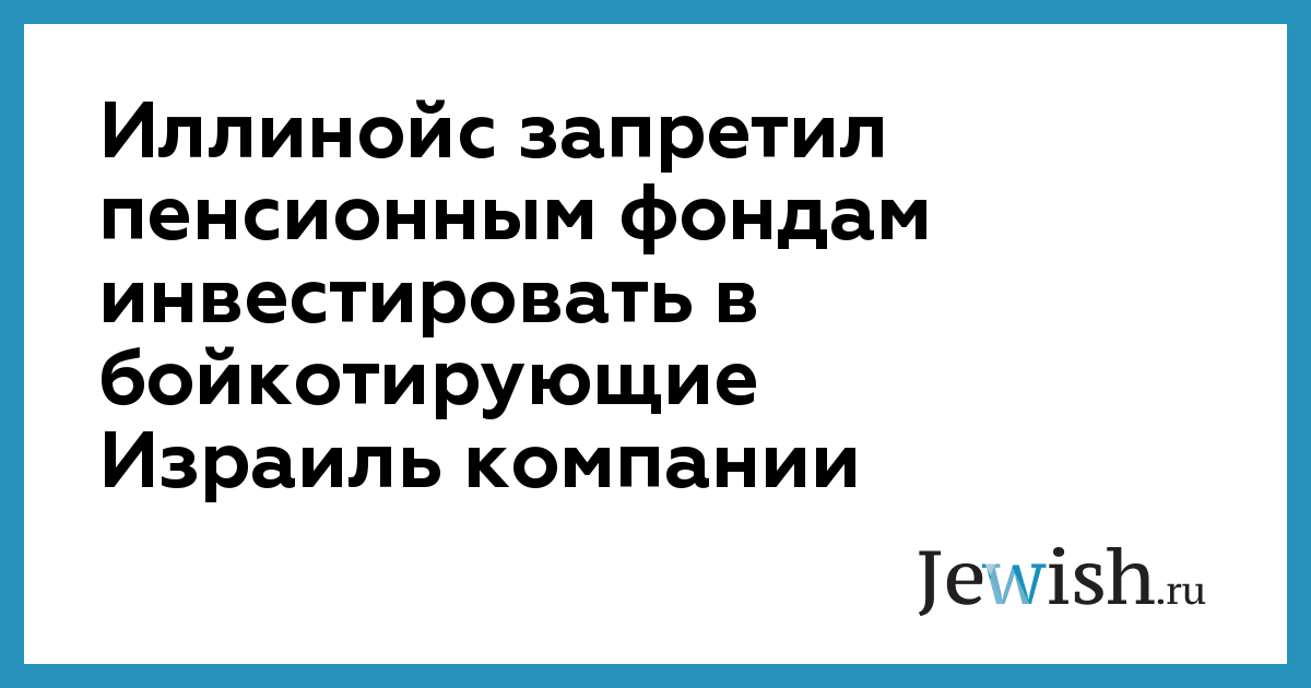 Иллинойс запретил пенсионным фондам инвестировать в бойкотирующие Израиль компании