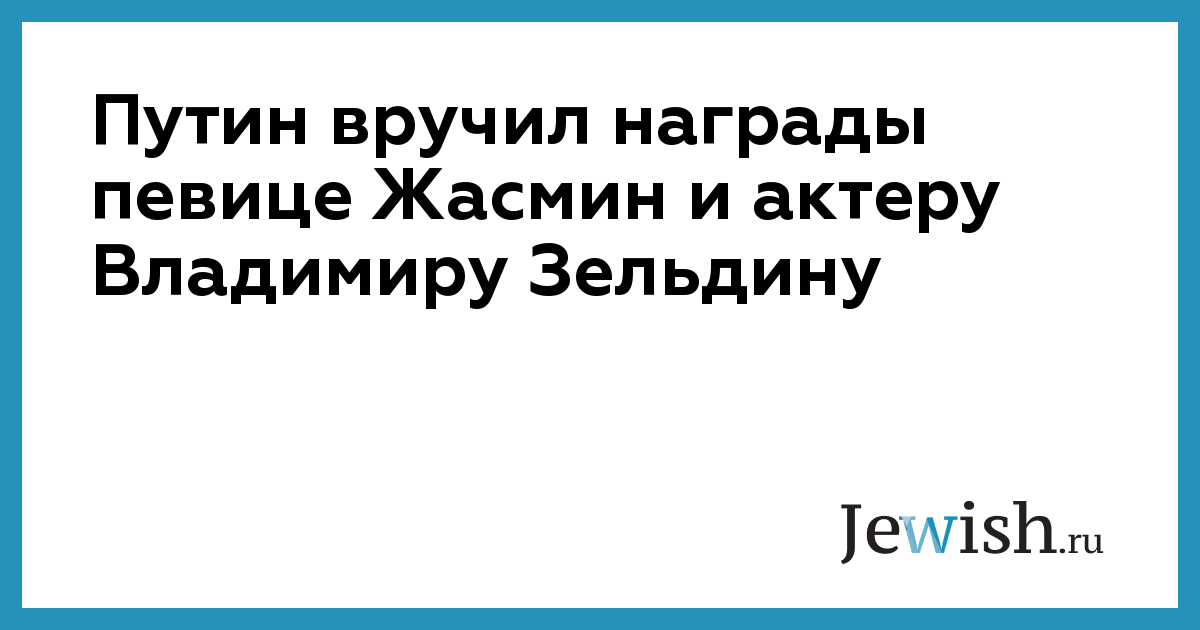 Путин вручил награды певице Жасмин и актеру Владимиру Зельдину