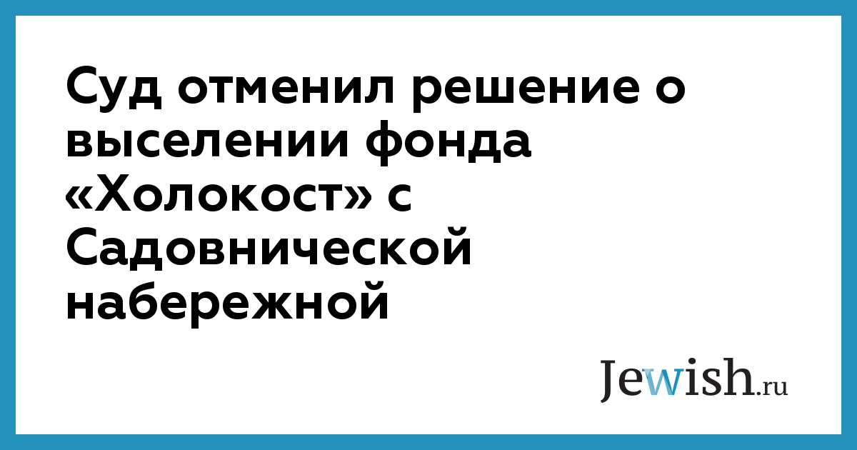 Суд отменил решение о выселении фонда «Холокост» с Садовнической набережной