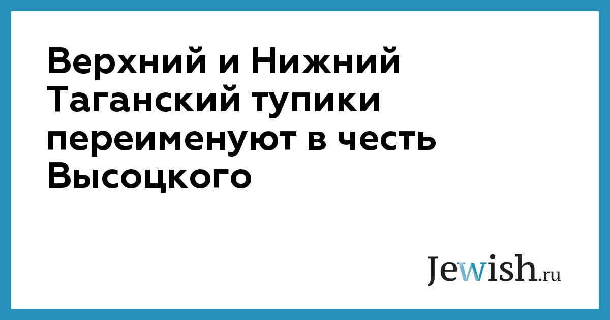 В понедельник, 25 мая, Межведомственная комиссия по наименованию территориальных единиц Москвы постановила переименовать в честь Владимира Высоцкого Верхний и Нижний Таганский тупики, сообщает