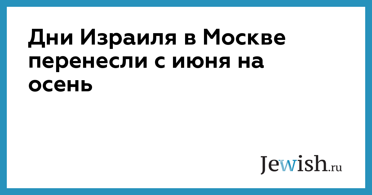 Дни Израиля пройдут в Москве осенью, а не в июне, как планировалось ранее,