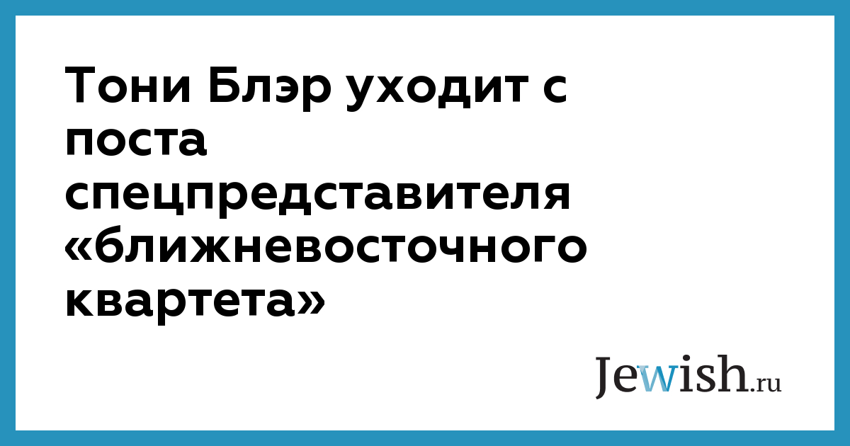 Тони Блэр уходит с поста спецпредставителя «ближневосточного квартета»