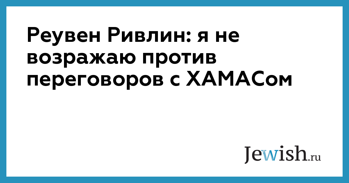 Реувен Ривлин: я не возражаю против переговоров с ХАМАСом