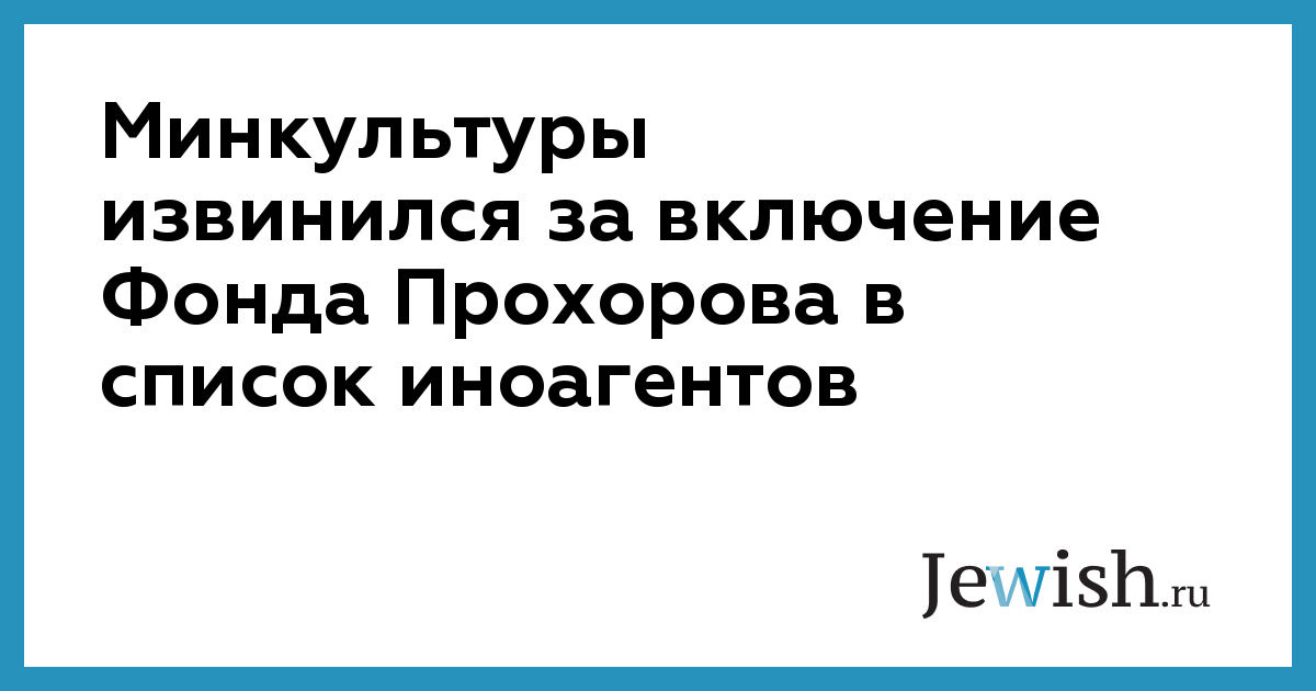 РИА Новости. «Можно по-разному относиться к проектам Фонда Михаила Прохорова, но масштаб его благотворительной деятельности, безусловно, вызывает уважение. Мы приносим извинения за техническую ошибку, из-за которой фонд попал в список организаций, финансируемых из-за рубежа», — сообщили в пресс-службе Минкультуры.