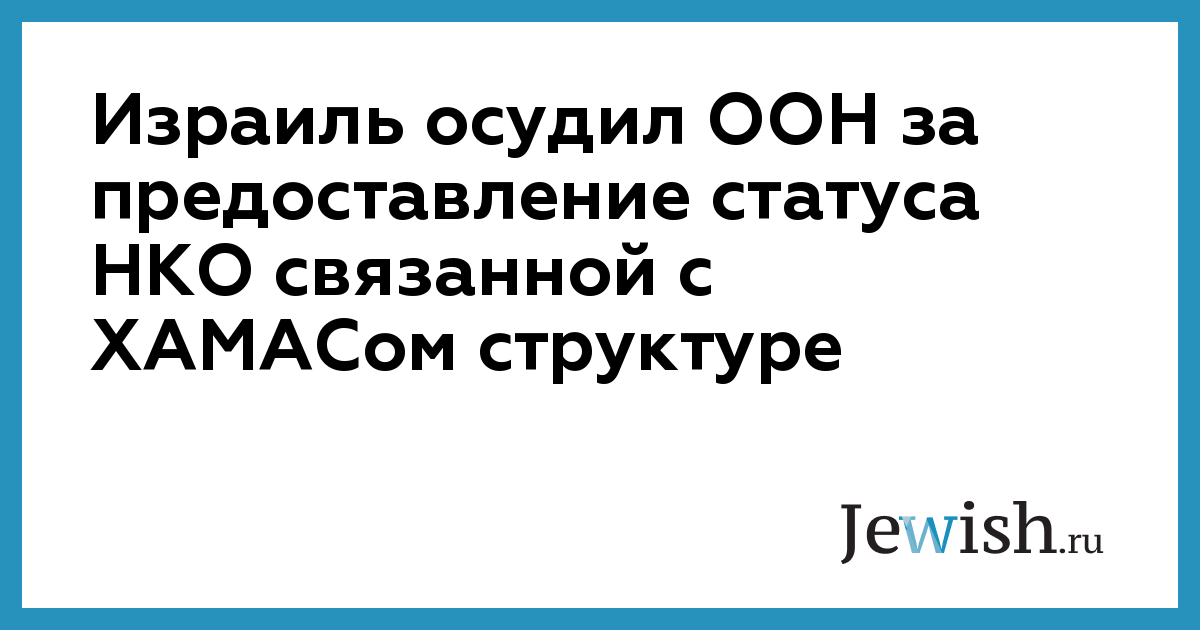 Израиль осудил ООН за предоставление статуса НКО группе, связанной с террористической группировкой ХАМАС. Миссия Израиля в ООН опубликовала заявление, осуждающее решение 19-ти членов Комитета ООН по неправительственным организациям, утвердившее заявку Палестинского центра возвращений (PRC) со штаб-квартирой в Великобритании.