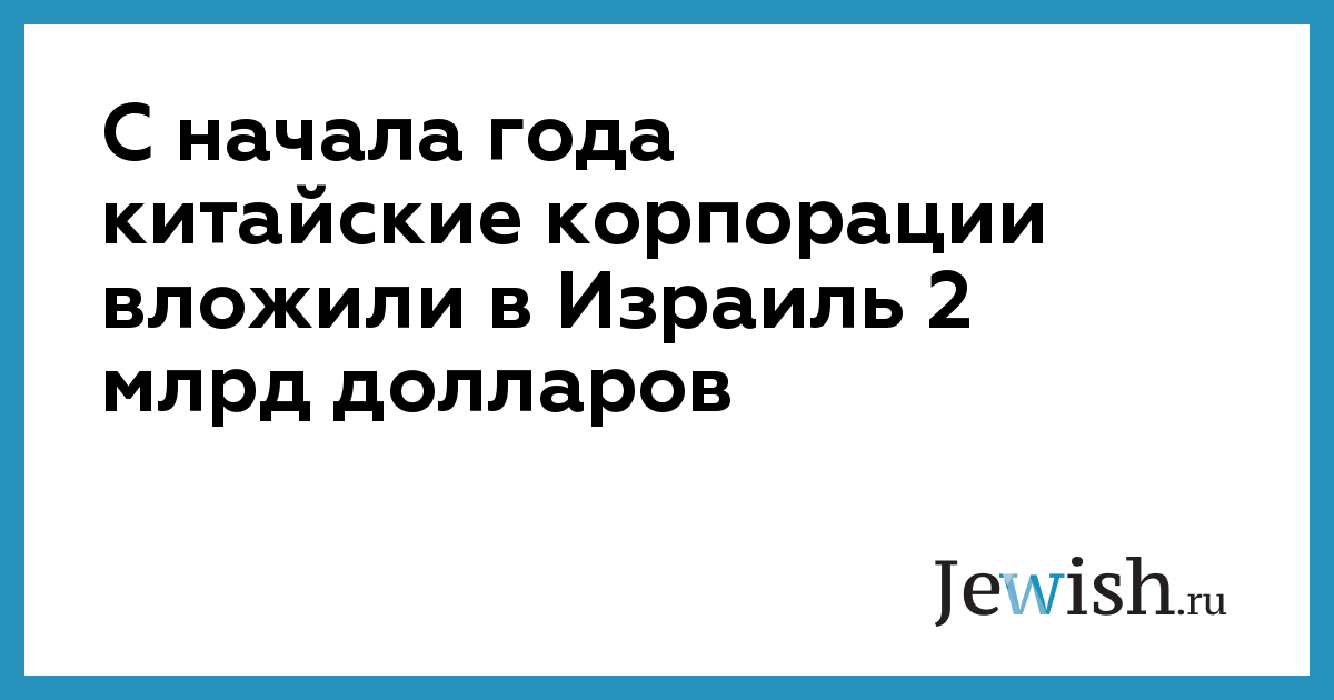 С начала года китайские корпорации вложили в Израиль 2 млрд долларов