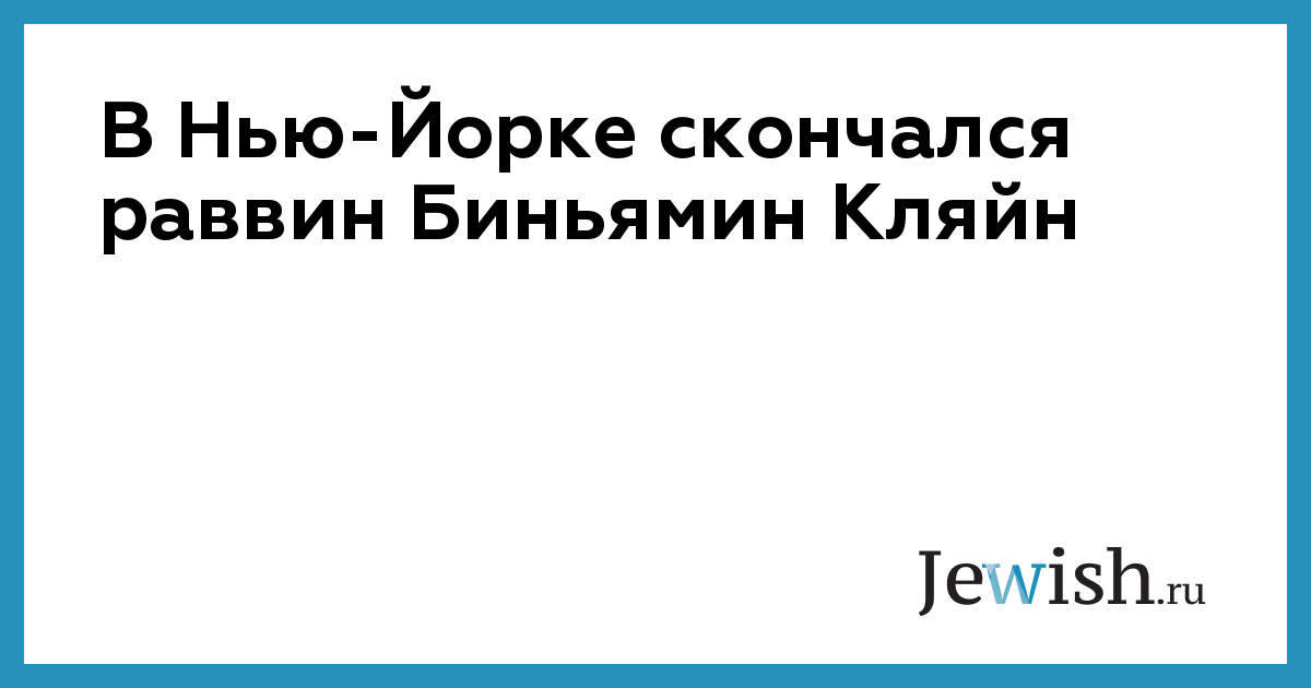 В Нью-Йорке скончался раввин Биньямин Кляйн