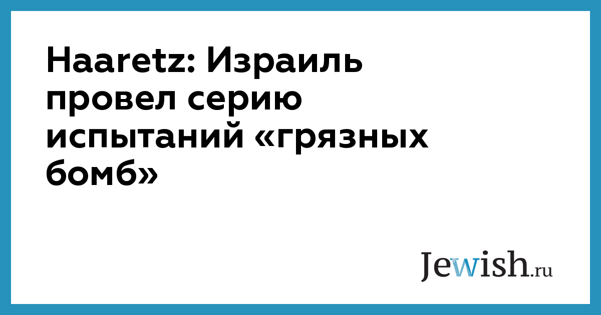 опубликованному израильским изданием Haaretz, в период с 2010 по 2014 год центр ядерных исследований в Димоне провел серию испытаний «грязных бомб» – снарядов с радиоактивной начинкой. Как сообщает Haaretz со ссылкой на участников тестов, они проводились с целью определения уровня опасности и способов защиты, а не для создания нового оружия подобного типа.