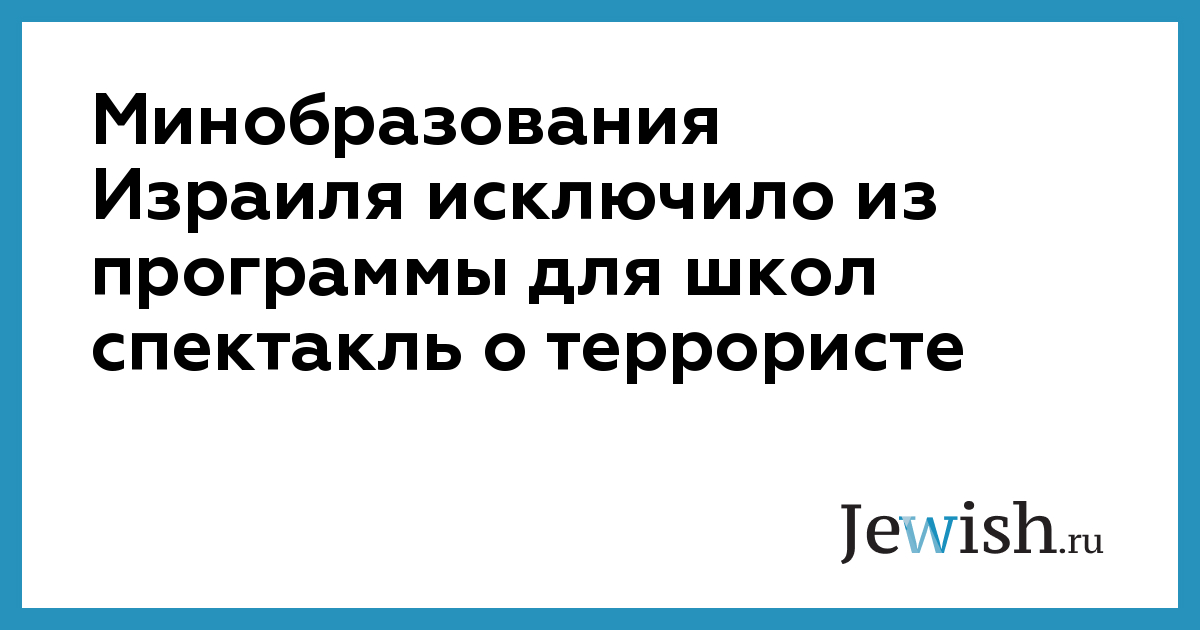 Министр образования Израиля Нафтали Беннет исключил из рекомендуемой для школьников программы спектакль хайфского театра «Аль-Мидан» «Параллельное время», посвященный истории палестинского террориста Валида Дака, похитившего и убившего израильского военнослужащего, и приговоренного к пожизненному заключению. Эта постановка ранее была одобрена репертуарной комиссией Минобразования, не усмотревшей в пьесе «ничего оскорбительного и разжигающего национальную ненависть», сообщает