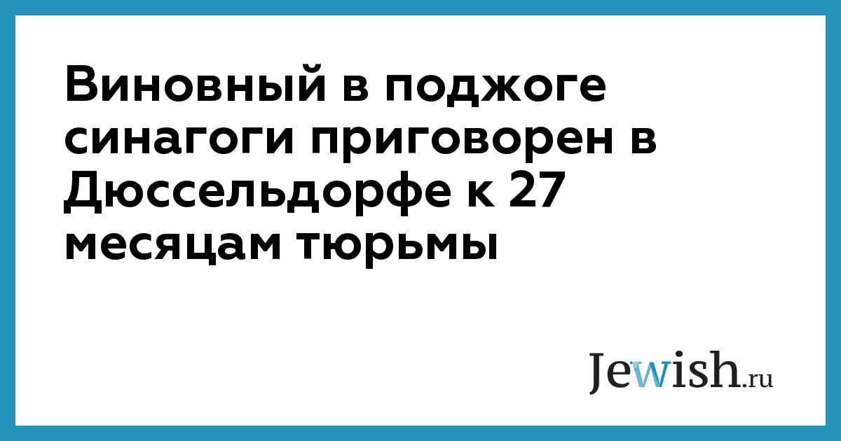 Виновный в поджоге синагоги приговорен в Дюссельдорфе к 27 месяцам тюрьмы