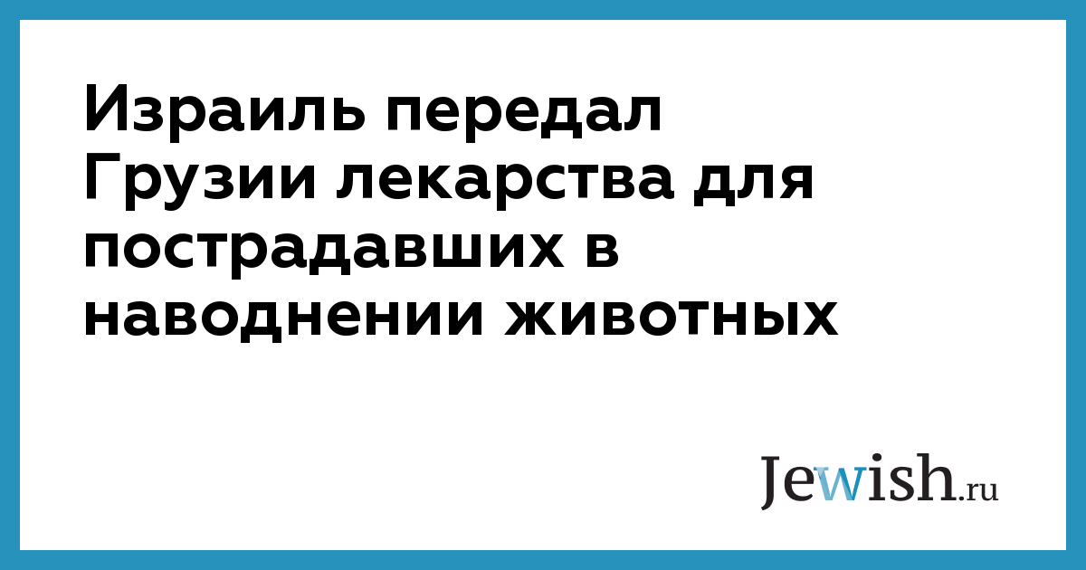 Израиль передал Грузии лекарства для пострадавших в наводнении животных
