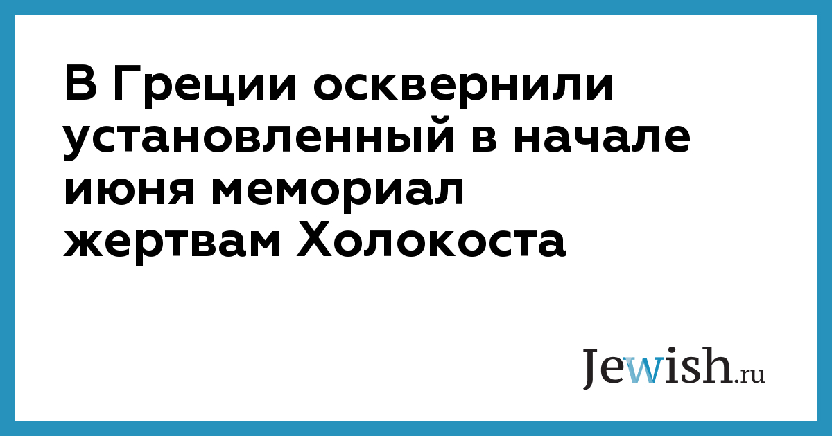 В Греции осквернили установленный в начале июня мемориал жертвам Холокоста