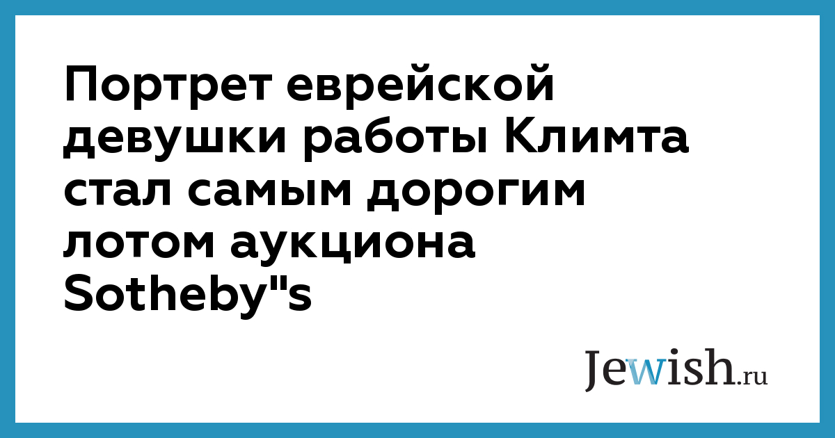 Портрет еврейской девушки работы Климта стал самым дорогим лотом аукциона Sotheby"s
