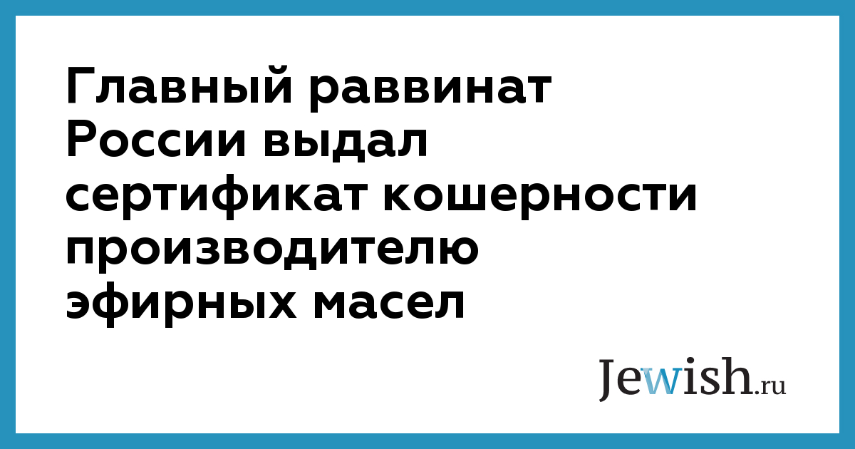 Главный раввинат России выдал сертификат кошерности производителю эфирных масел