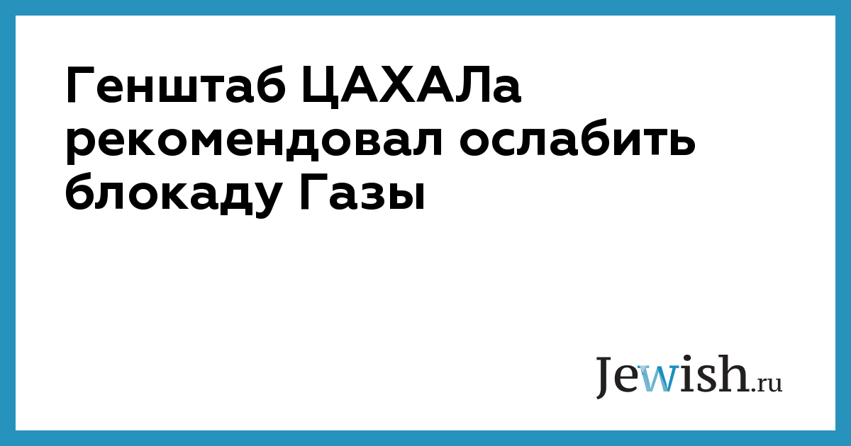 Генштаб ЦАХАЛа рекомендовал ослабить блокаду Газы