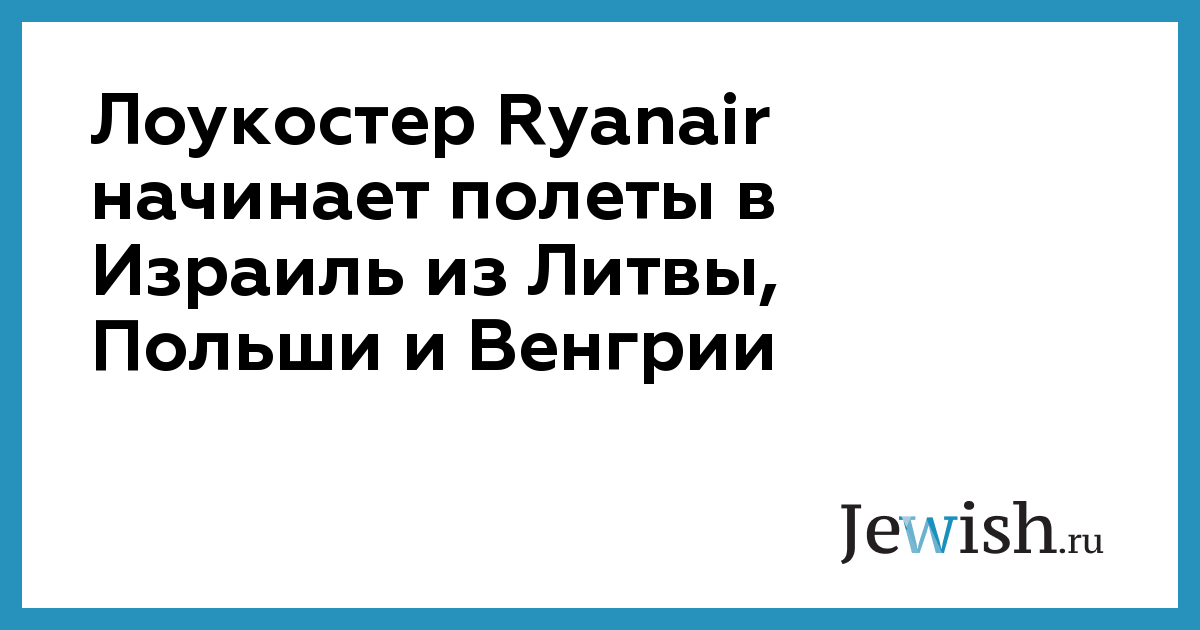 Лоукостер Ryanair начинает полеты в Израиль из Литвы, Польши и Венгрии