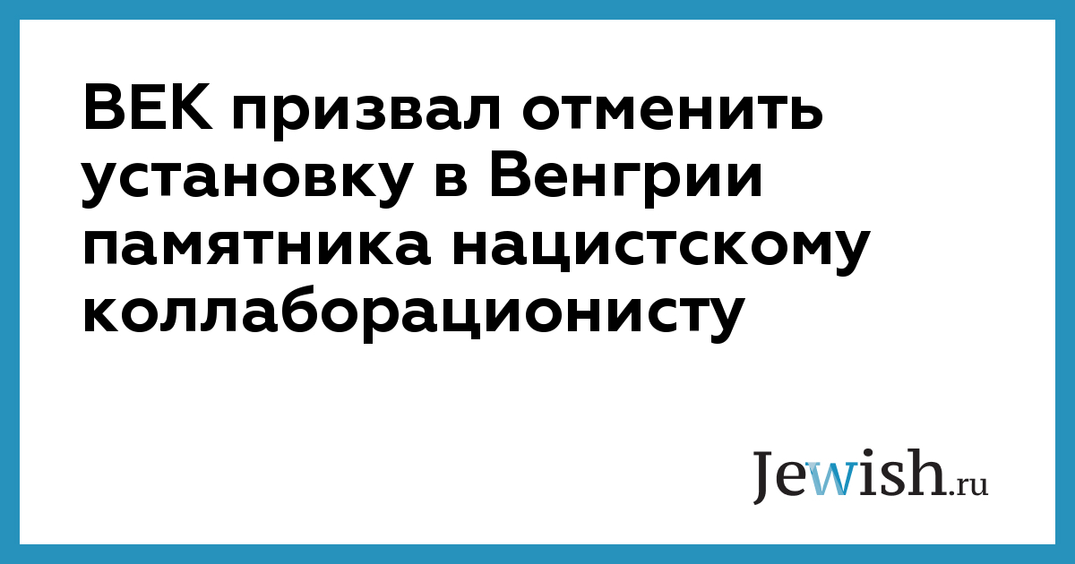 ВЕК призвал отменить установку в Венгрии памятника нацистскому коллаборационисту